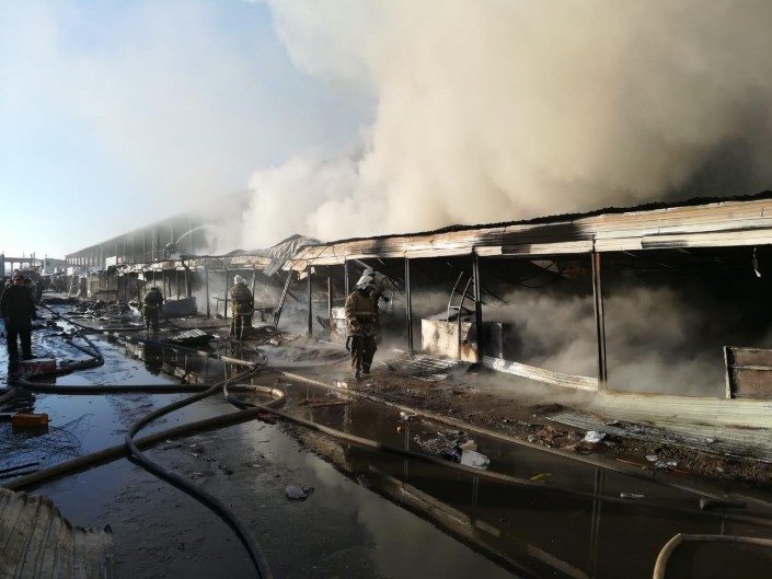 Как сообщили в пресс-службе КЧС МВД РК, загорелись девять бутиков вещевых товаров. Предварительная площадь - 700 квадратных метров. Пожар локализован в 09.47 и ликвидирован в 10.01.