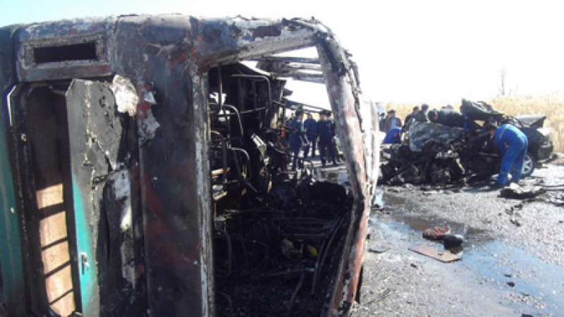 В дорожно-транспортном происшествии с возгоранием микроавтобуса YOUYI и автомашины "Мицубиси" в Жамбылской области погибли четыре человека, передает корреспондент Tengrinews.kz со ссылкой на МЧС Казахстана. Еще восемь человек госпитализированы. Среди пострадавших есть дети.