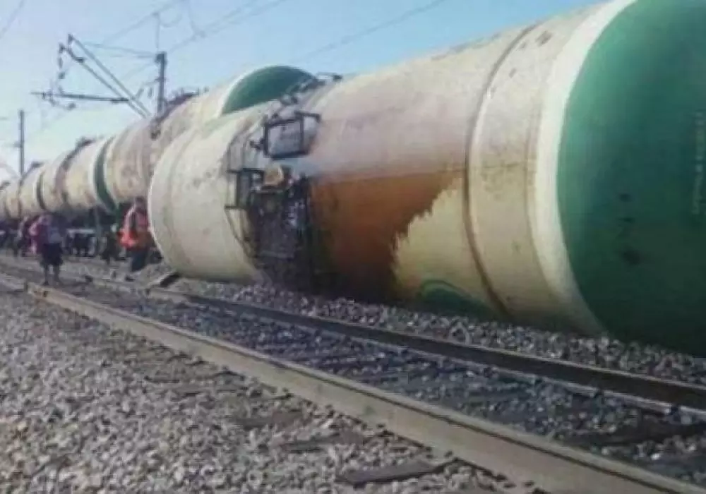 По информации ДЧС, с рельсов сошла одна цистерна с жидким газом пропаном, утечки нет, пути не повреждены.