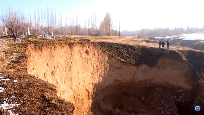 "Тогда зияли три дыры, могилы трех человек. Сейчас мы видим еще две. Это же ужас! Вон зияют дыры - даже кости видны. А на этой части откоса останки уже выпали из могилы. До сих пор не могу успокоиться. Кому только не говорил. Все знают, но никто не принимает мер. Поэтому пришлось мне обратиться в редакцию телекомпании "Отырар", - рассказал житель села Маятас.