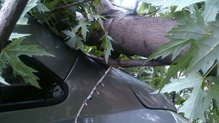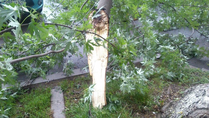 Дерево придавило авто в Алматы, передает корреспондент программы "Территория происшествий" на телеканале СТВ.