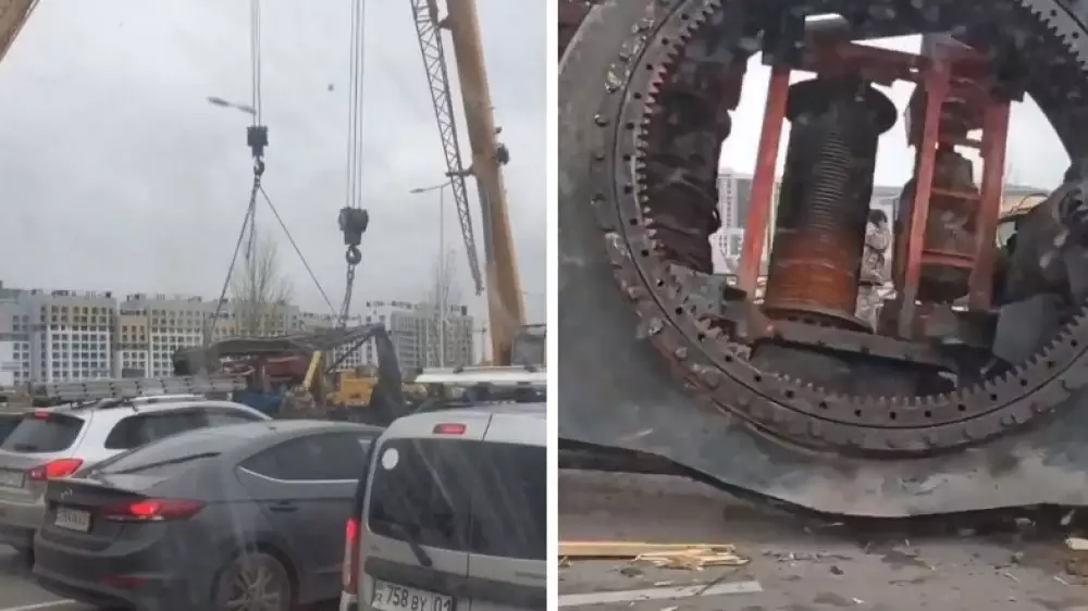 Судя по кадрам, появившимся в Instagram, деталь крана упала на автодорогу на проспекте Туран недалеко от пересечения с улицей Сыганак.