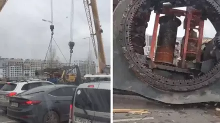 Деталь строительного крана уронили на дорогу в центре Нур-Султана Кадр из видео