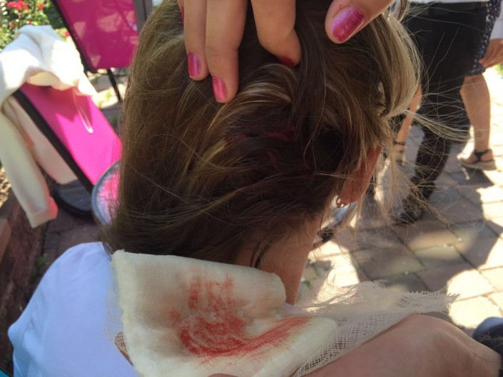 "Это случилось в среду, 17 августа, в 13.30. Сидели за этим самым столиком, нас было четверо. Я получила травму, мне осколок прямо в ногу попал, также в руку, есть ушиб головы, но не очень, только краем. Ходить не могу, хромаю. Глаза не пострадали, потому что были очки. Подружка-коллега сидела, она вот очень пострадала, очень серьезные травмы у нее. Пишут, что не особой тяжести, на самом деле все очень критично, она в больнице. У нее сотрясение, какой-то сосуд повредился. Она прислала мне фотографии, где ей уже зашили голову. Там огромнейшая рана, чуть ли не до костей, до головного мозга. Врачи отправили ее на МРТ. При этом подругу не стали класть в бесплатное отделение, сказали что бесплатно лечат только по квоте. Сначала отправили ее домой, зашив рану", - сообщила пострадавшая.