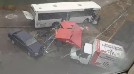 По информации представителя управления дорожной полиции, столкнулись пассажирский автобус, Газель и Toyota Camry. В результате ДТП разрушена конструкция мобильного шиномонтажа.