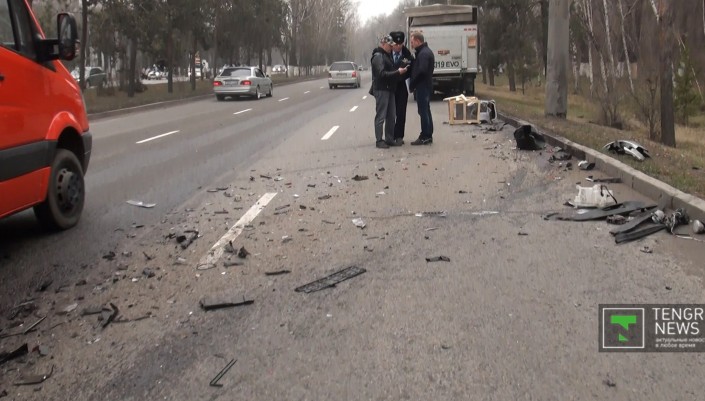 Как сообщил корреспондент программы "Территория происшествий" на телеканале СТВ, автомобиль MAN двигался по Суюнбая на юг, когда в него на полном ходу врезался Lexus. По словам водителя MAN, легковой автомобиль двигался на высокой скорости. В результате ДТП пострадала девушка, которая находилась за рулем Lexus, ее доставили в больницу.