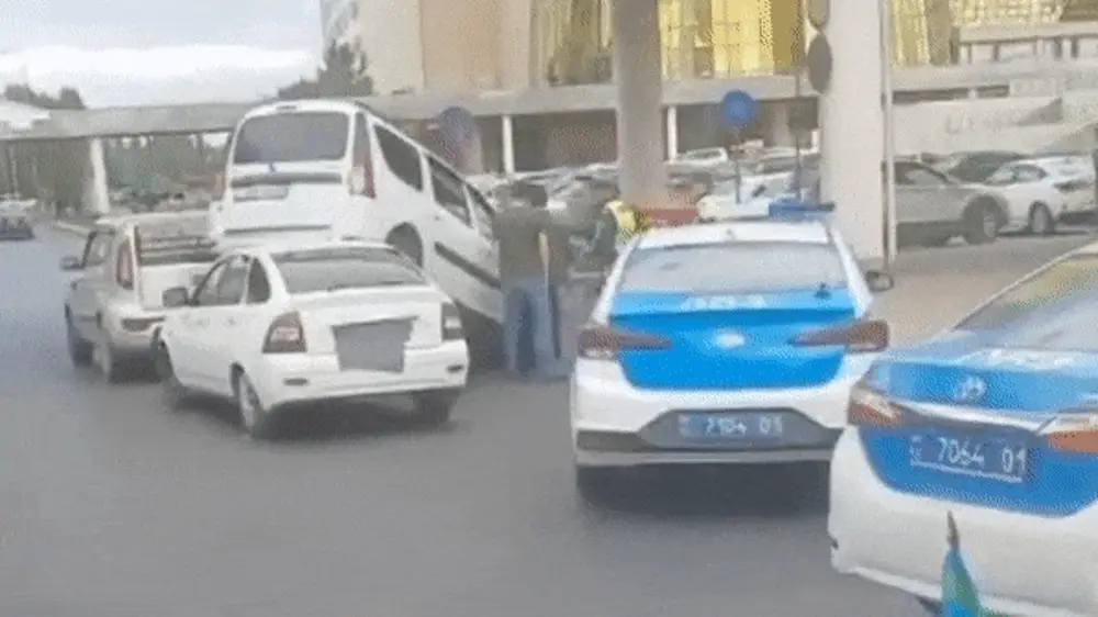 В социальных сетях распространяется видео аварии, в результате которой один автомобиль оказался на крыше другого, передает корреспондент Tengrinews.kz.