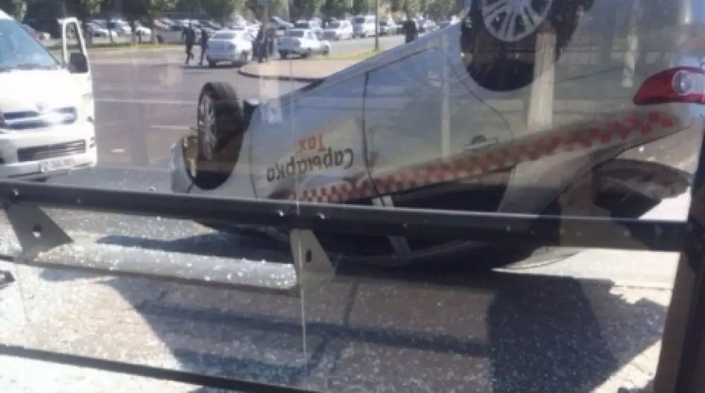 ДТП в Астане: Такси перевернулось на остановке Фото из соцсети "ВКонтакте", Жасар Масанов.