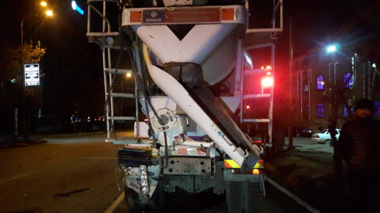 Авария произошла на пересечении улиц Розыбакиева и Байкадамова. По словам очевидцев, водитель Lexus, двигаясь по Розыбакиева в северном направлении, на полном ходу врезался в стоявшую на светофоре бетономешалку.