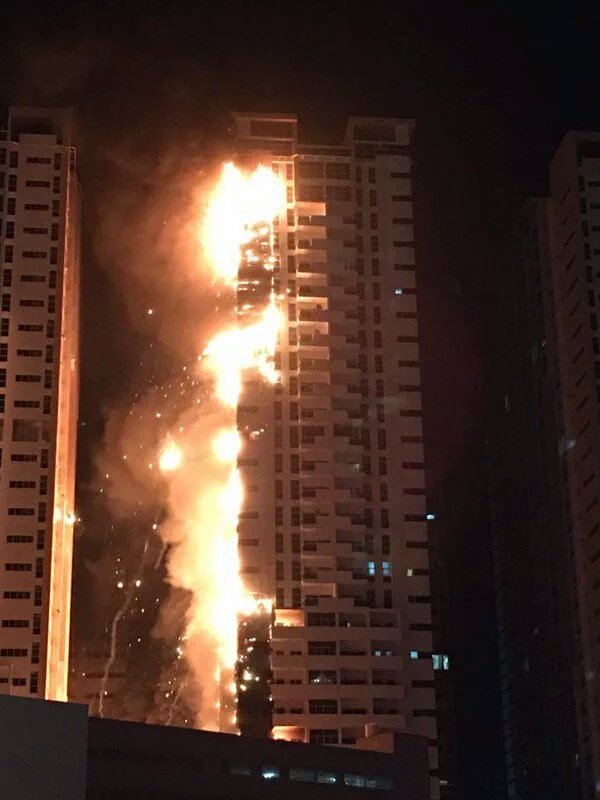 По данным портала, загорелся жилой комплекс Ajman One, состоящий из 12 высотных зданий. Сигнал о возгорании поступил около 21.45 по местному времени. Огнем охвачены уже два небоскреба. Жители зданий эвакуированы. Зарево с места происшествия в ночи видно на расстоянии нескольких километров.