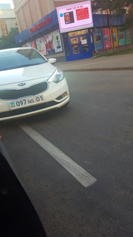 "11 июля 2016 года в 11.10 водитель 1983 года рождения автомашины Kia Cerato 097 NS 01, следуя по улице Агыбай батыра, нарушил Правила дорожного движения. В отношении водителя был составлен протокол по статье 601 части 1 КР КоАП "Несоблюдение требований, предписанных дорожными знаками или разметкой проезжей части дороги". Согласно данной статье водителю был выписан штраф на сумму 5 МРП", - сообщили в местной полицейской службе ДВД Астаны.