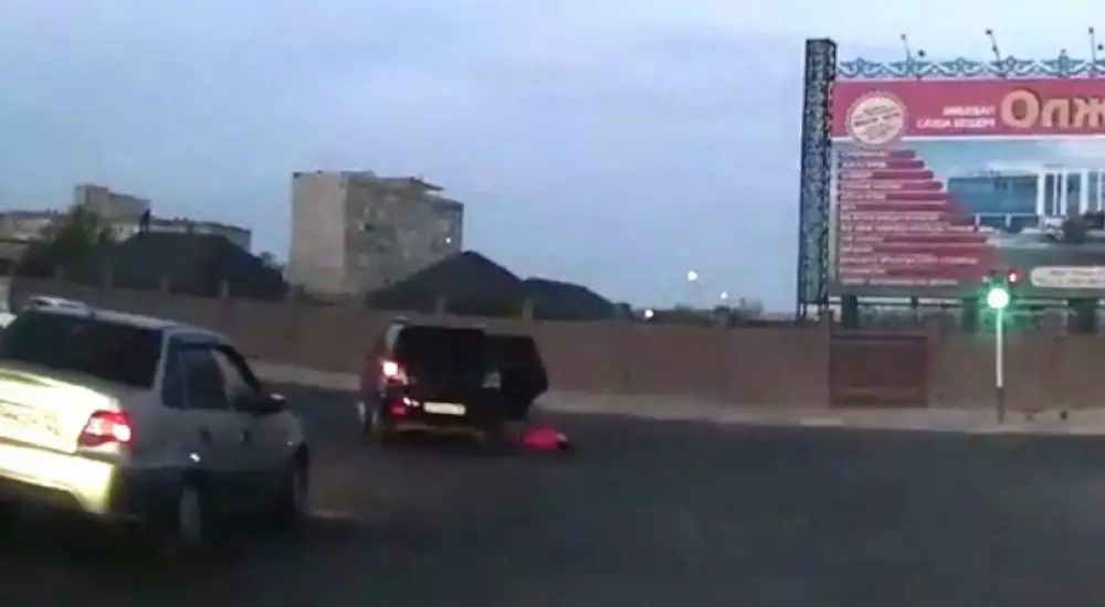 В Актау двухлетняя девочка выпала из движущегося автомобиля. Видео с регистратора появилось на YouTube 4 мая, сообщает "Лада".