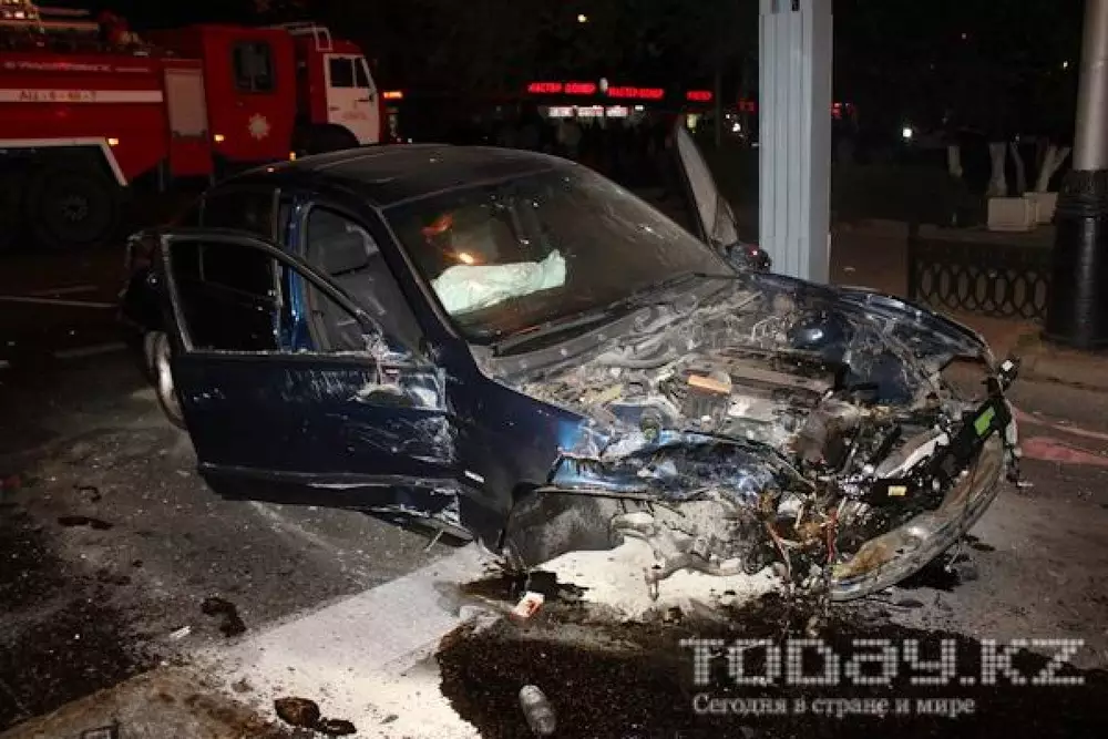 По ее информации, водитель автомашины Mercedes, двигаясь по Толе би в западном направлении, столкнулся с BMW синего цвета, который направлялся по Фурманова в северном направлении. После столкновения Mercedes продолжил движение и ударил припаркованный автомобиль Toyota, водитель которого находился на улице.