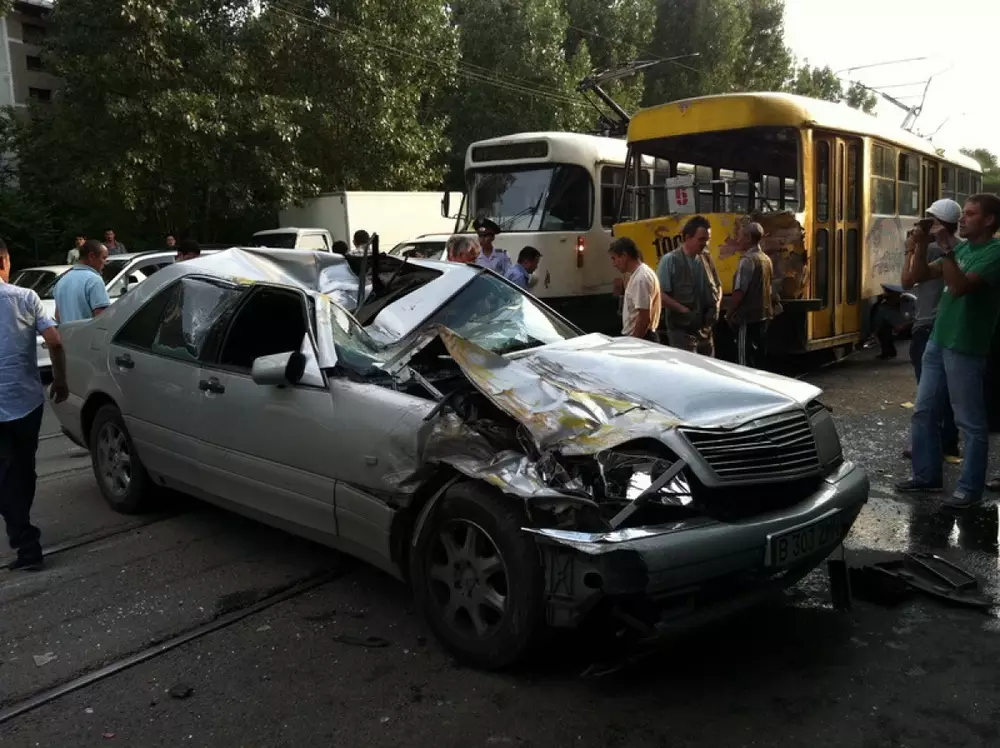 В Алматы на трамвайной линии по улице Утепова недалеко от пересечения с улицей Радостовца 6 июля произошло дорожно-транспортное происшествие, передает корреспондент Tengrinews.kz. Как рассказали очевидцы, на большой скорости в западном направлении по улице Утепова ехал Mercedes. Увидев трамвай, который в тот момент высаживал пассажиров, водитель авто начал резко тормозить, но не справился с управлением, и его занесло на рельсы. Задев еще одну машину, Mercedes перевернулся на бок, после чего столкнулся с трамваем. Участники аварии отделались ушибами. Позже выяснилось, что у водителя Mercedes не оказалось страховки, за руль он сел всего один месяц назад, а машину, как уверяет он сам, ему подарили.
