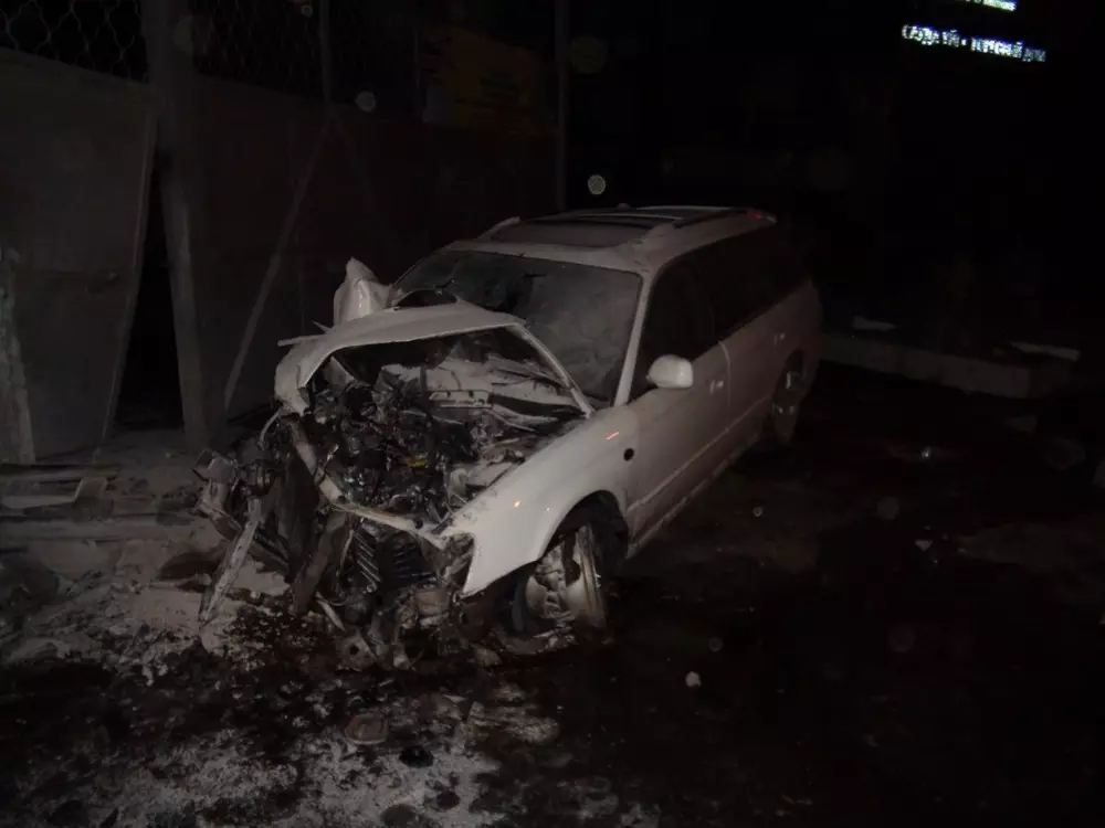Минувшей ночью в Алматы автомобиль марки Subaru врезался в металлический забор и загорелся, сообщает телеканал СТВ.