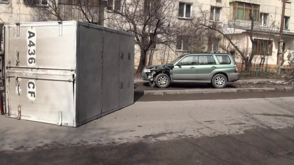 В центре Алматы перевернулась ГАЗель, сообщают корреспонденты программы "Полицейский Патруль" на телеканале СТВ. По словам очевидцев происшествия, водитель ГАЗели решил объехать открытые канализационные люки, выехав на полосу встречного движения. В этот момент из проулка выехала автомашина BMW. После столкновения с ней грузовик перевернулся на бок. По инерции ГАЗель протащило по асфальту, после чего автомашина столкнулась с припаркованным Subaru. Жертв и пострадавших нет.