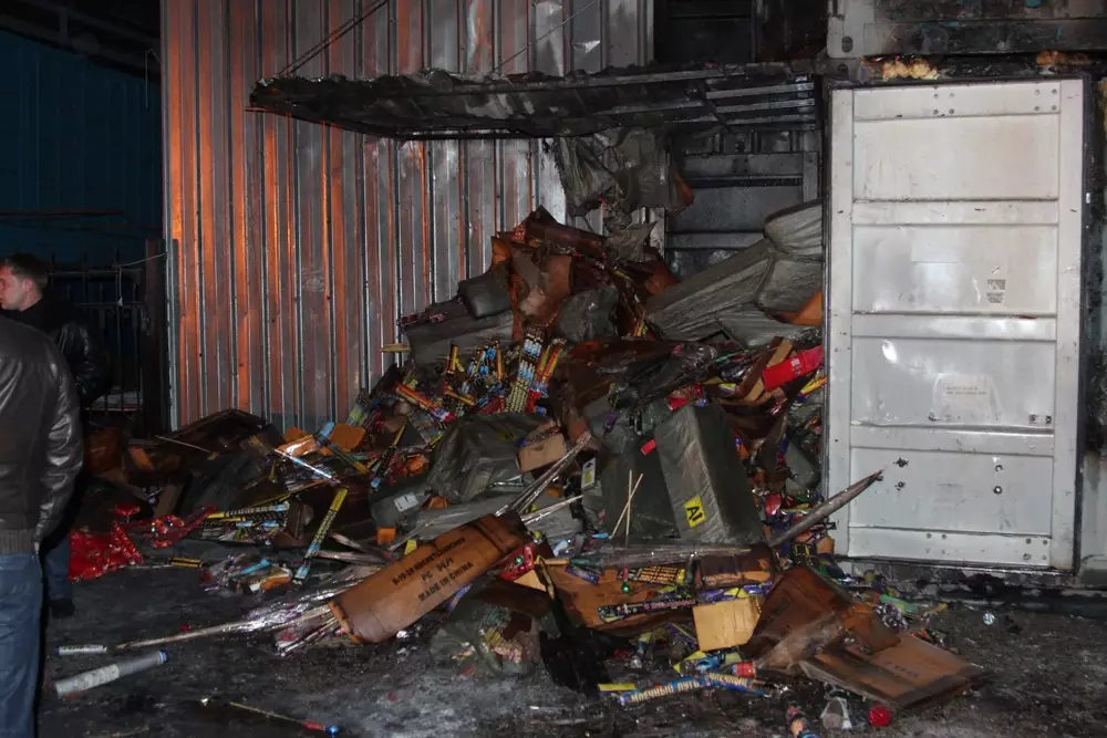 18-летний парень умер в машине скорой медицинской помощи. Пиротехника в контейнерах продолжает гореть, на месте происшествия работают спасатели, пожарные и сотрудники правоохранительных органов.
