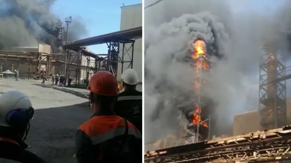 "9 июня примерно в 10.30 при проведении ремонтных работ конуса скрубера 214-S-04 на участке УП-1 произошло возгорание газоотвода. Пожар локализован в 11.00", - сообщили в пресс-службе.