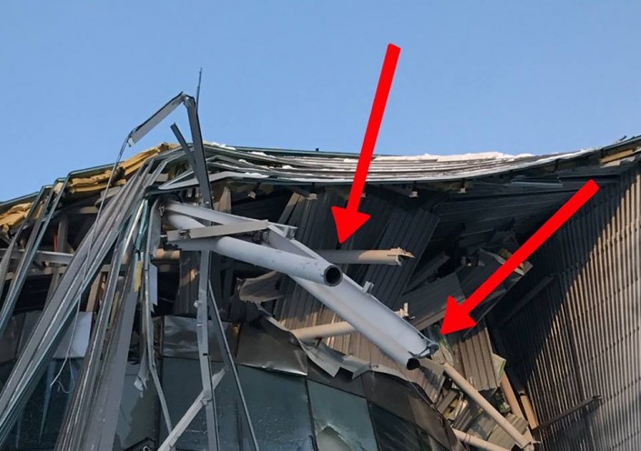 По его словам, если внимательно рассмотреть фотографии, можно разглядеть, что конструкция обломилась не в месте сварных швов или монтажных креплений, а таким образом, как будто ее срезали.