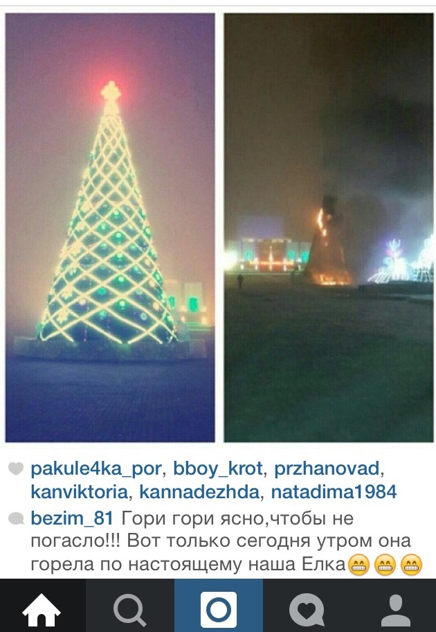 Главная новогодняя елка Кызылорды сгорела на центральной площади города, сообщает корреспондент Tengrinews.kz со ссылкой на ДЧС области.