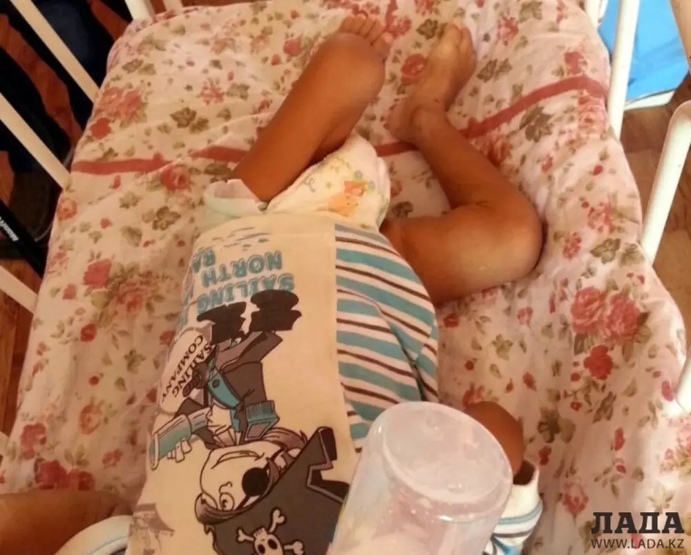 После осмотра врачи обнаружили у малыша сильную гипотрофию мышц, гематомы на лице и голове, нагноившиеся пролежни на ягодицах. "При поступлении ребенок был очень грязным. Из протокола осмотра следует, что у него средняя дистрофия, то есть он весит в два раза меньше, чем положено в его возрасте. У него неврологические расстройства. Мальчик очень беспокойный, не говорит и не реагирует на голос. Ему больше года, но из-за гипотрофии мышц он даже не сидит. Из этого следует, что большую часть жизни ребенок был привязан к бесику и находился без движения", - рассказала Назгуль Кисикбасова, педиатр-гематолог детской областной больницы. По словам врачей, под грязным памперсом в пролежнях у годовалого ребенка завелись черви. Мальчик был очень голодным.