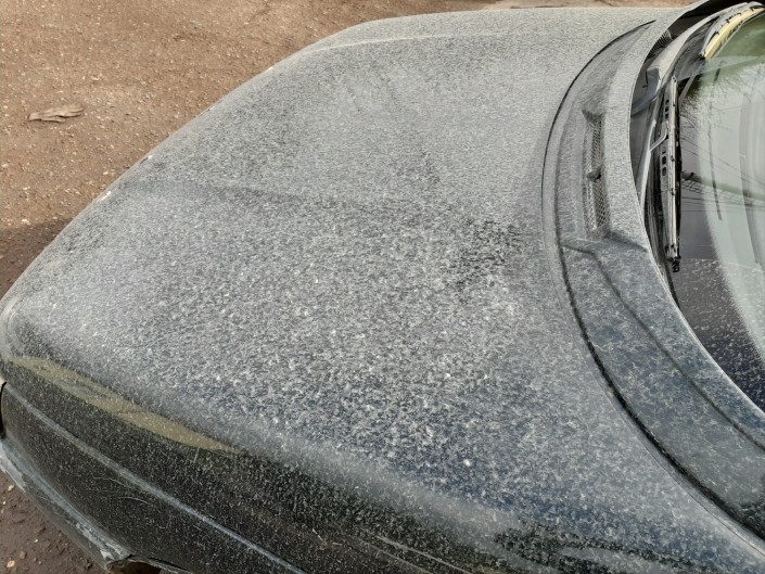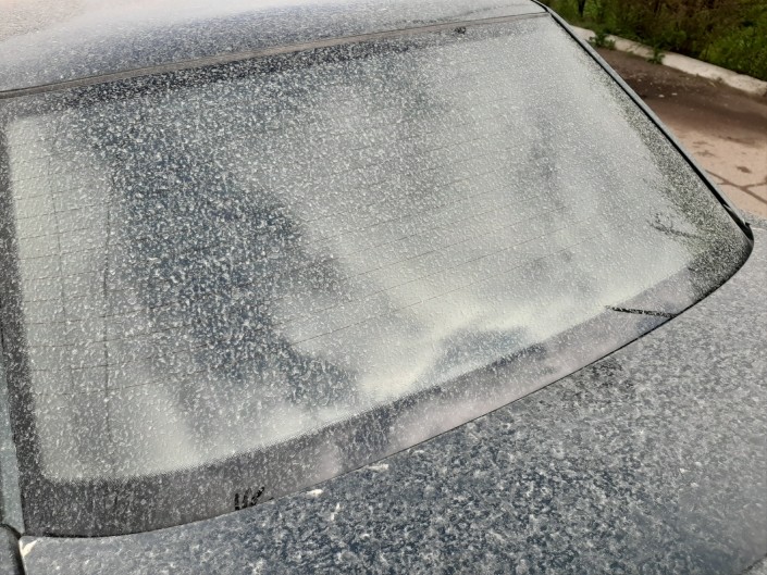 В Уральске первый майский дождь вызвал опасения у горожан. После выпадения осадков на поверхности одежды жителей города и автомобилей остались бело-серые пятна, передает корреспондент Tengrinews.kz.