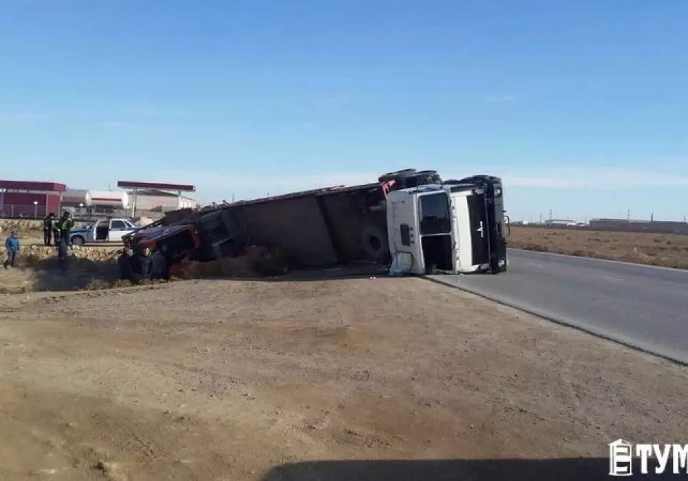 Груженная фура перевернулась в Актау Фото с сайта tumba.kz