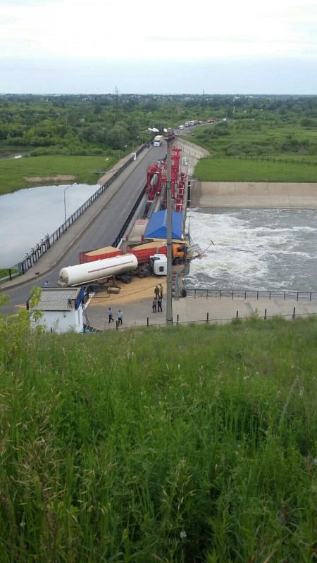 В Петропавловске на дамбе столкнулись две грузовые машины и разнесли здание операторского поста, передает корреспондент Tengrinews.kz. Видео инцидента появилось в социальных сетях.