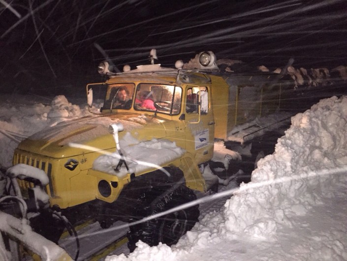 Голос за кадром неутешительно замечает, мол, придется остаться здесь на Новый год. Но тем не менее водители не отчаиваются и намерены ждать до последнего.