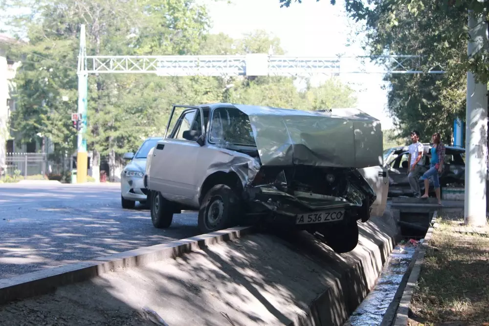 Volkswagen двигался на восток по улице Богенбай батыра, остальные три автомобиля ехали в южном направлении по улице Наурызбай батыра. В результате столкновения, сильные травмы получил только водитель ВАЗ-2107. Он госпитализирован в больницу. Отметим, что на данном перекрестке, если светофор не работает, то движущиеся по улице Богенбай батыра должны уступать автомобилям по улице Наурызбай батыра.