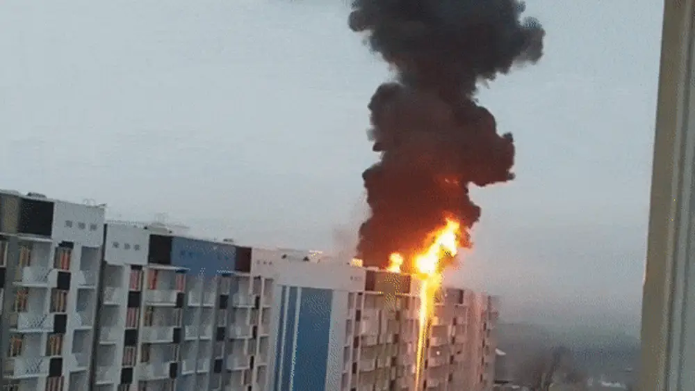 Произошло загорание утеплительного материала между двумя девятиэтажными новостроящимися незаселенными жилыми домами", - сообщили в пресс-службе ДЧС.