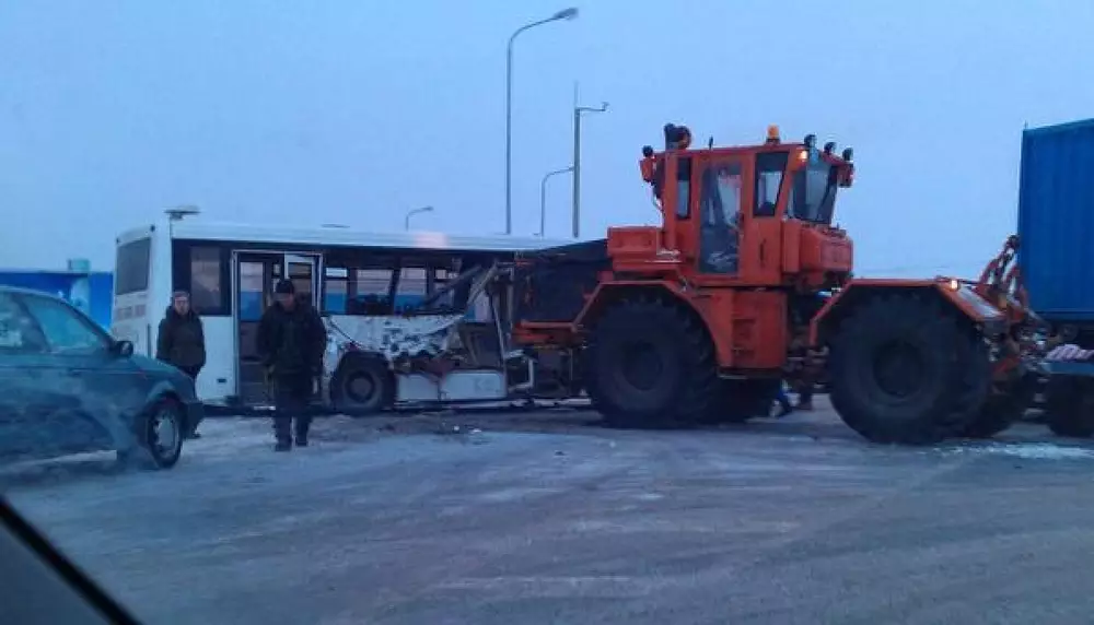 "21 ноября в дежурную часть ДВД Астаны поступило сообщение о произошедшем ДТП.  По информации, около 17.00 часов трактор К-700, перевозивший груз, столкнулся с маршрутным автобусом № 12, следовавшим по маршруту из поселка Пригородный по направлению в город", - сообщили в пресс-службе.