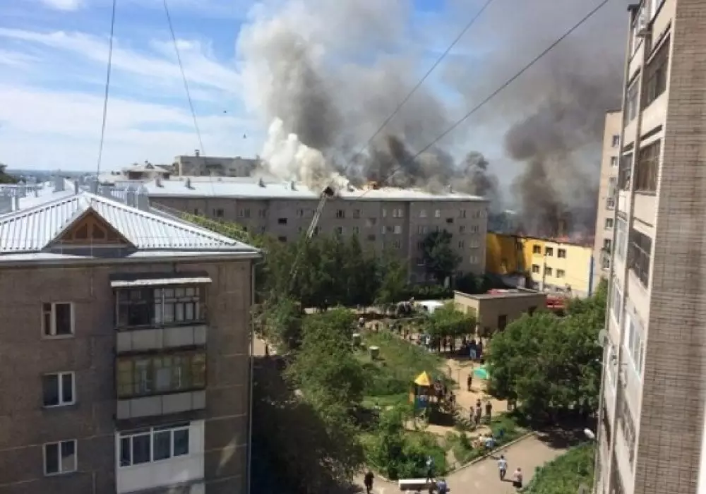 В Петропавловске горят кафе Pizza House и пятиэтажный жилой дом по улице Ульянова, 44, сообщает 24.kz.