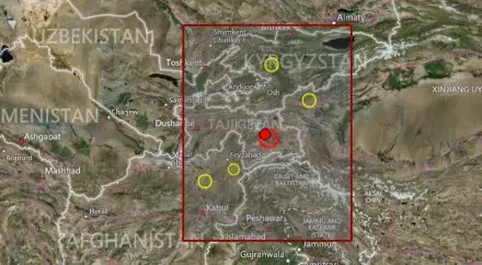 Как сообщается на сайте Европейско-Средиземноморского сейсмологического центра, землетрясение магнитудой 7,2 произошло в 364 километрах восточнее Душанбе в 13.50 по времени Астаны. Глубина залегания подземных толчков - 10 километров.