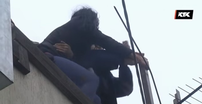 Никакие уговоры на разбушевавшуюся гражданку не действовали. Она поднимала крик при любой попытке приблизиться к ней, поэтому спасателям пришлось действовать силой. Девушку крепко связали и спустили с крыши на веревке. После этого связанную гражданку передали полицейским для профилактической беседы.