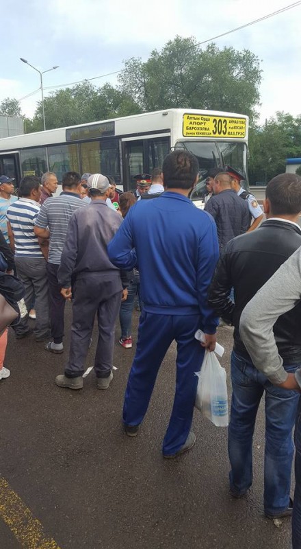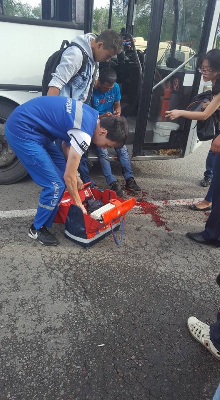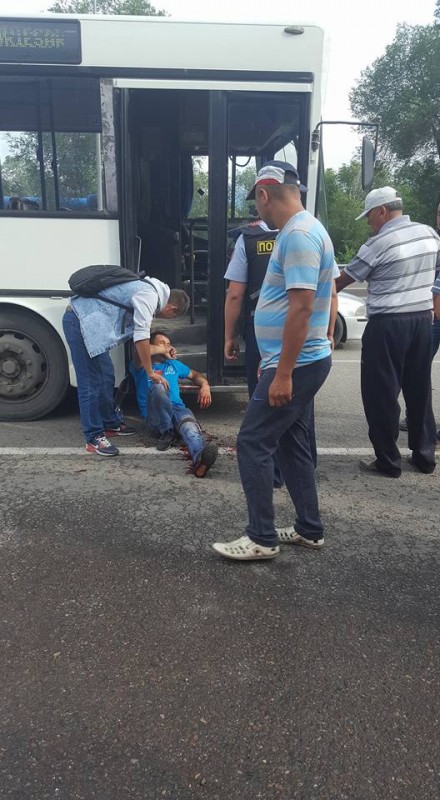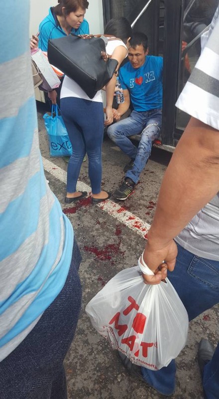 Пользователь Facebook Shinar Alban опубликовала у себя на странице фото инцидента, который, по ее словам, произошел в автобусе маршрута №303 вечером 22 июня. "Только что стала очевидцем ужасающей ситуации. Это произошло перед ТД "Арзан". Кондуктор 303 маршрута ударил ножом пассажира, у которого не было денег на проезд. К тому же шестеро парней отпинали его", - написала пользователь.