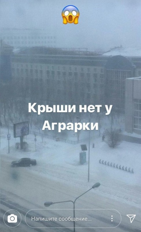 Между тем в Сети появились фото и видео якобы последствий срыва кровли здания КазАТУ.
