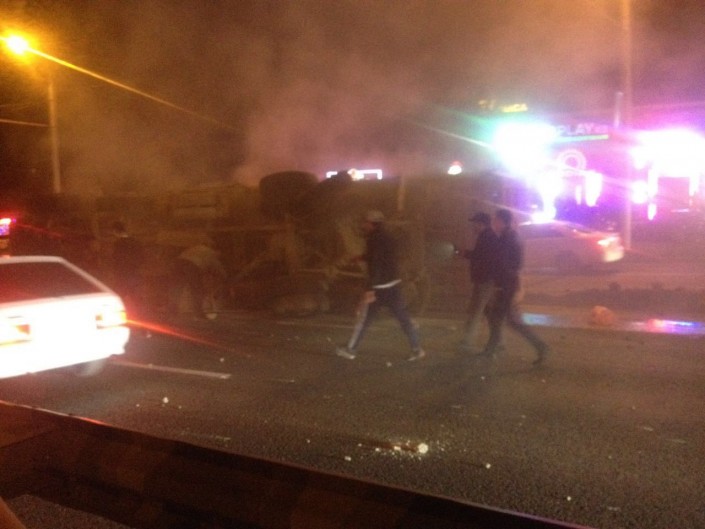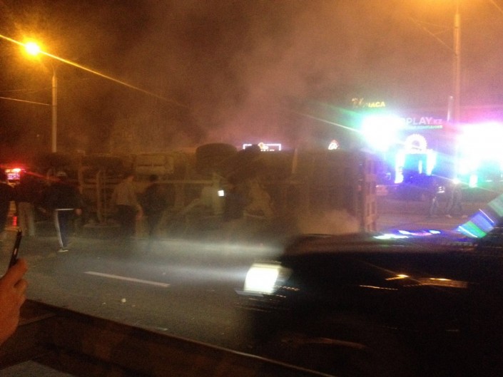 Очевидец происшествия рассказала Tengrinews.kz, что в момент аварии находилась в доме, который расположен неподалеку. "Я укладывала спать малыша, услышала сильные удары, потом сильный скрежет по асфальту. Позвала мужа, мы подошли к окну и увидели дым. Потом спустились вниз, увидели там перевернутый грузовик. Дальше были две перевернутые легковые машины. Это было в 22.07", - сообщила она.