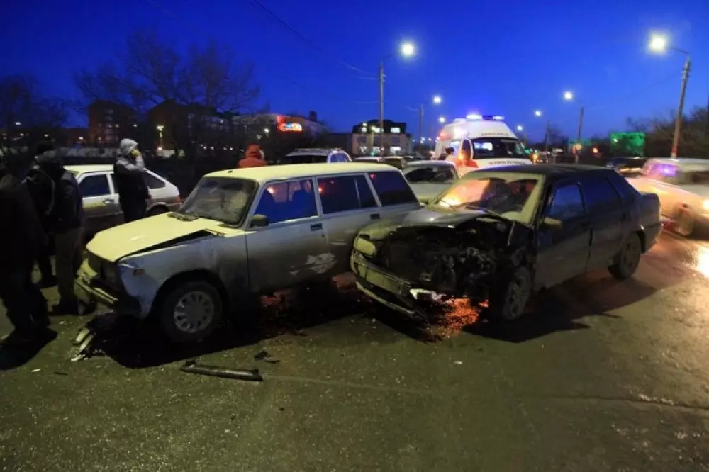 Крупное ДТП в Уральске с участием шести машин произошло вечером 15 марта на автомобильном путепроводе в районе завода "Омега", пишет "Уральская неделя". По словам очевидцев, ДТП в Уральске произошло из-за того, что автомобиль ВАЗ-2115, спускавшийся с моста, совершая обгон, выехал на встречную полосу движения. "Первым его увидел я. Он ехал очень быстро. Примерно 70-80 километров в час. Он летел мне на встречу и я принял вправо. В этот момент водитель "пятнашки" стал экстренно тормозить, но от этого его машину занесло и он юзом ударил меня в заднее крыло. После меня он почти в лобовую столкнулся с "Приорой" и еще с одной машиной. Остальные повредились от того, что стали уворачиваться от "пятнашки", - рассказал один из водителей пострадавшей машины. В результате ДТП в Уральске пострадал один человек - водитель ВАЗ 2115. Он госпитализирован с подозрением на сотрясение головного мозга.