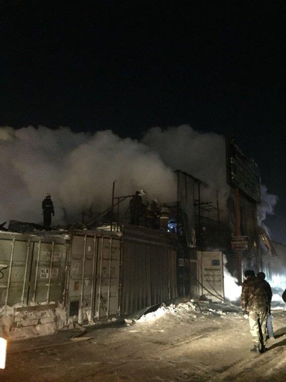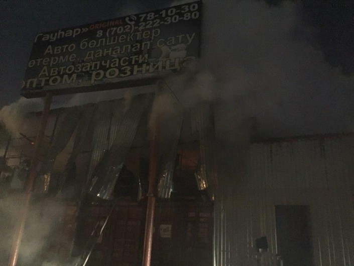 "30 января 2018 года около 10 часов вечера на территории ИП "Коптилеуова К." произошло загорание торгово-складских помещений по реализации автомобильных масел и запчастей, сконструированных из контейнеров. Усилиями 28 пожарных в 22/49 достигнута локализация пожара. Площадь пожара составила порядка 120 квадратных метров. Жертв и пострадавших нет. Для тушения пожара привлечены семь единиц специализированной пожарной техники. Пожар ликвидирован в 23.40", - сообщил Иманкулов.