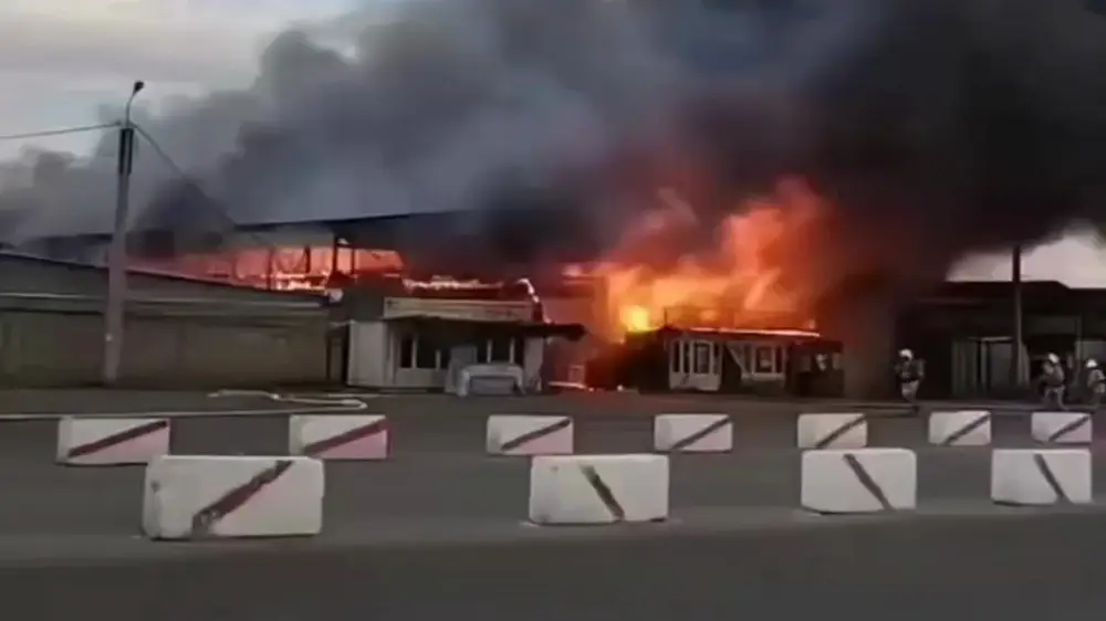 Спасатели борются с крупным пожаром в Таразе. Огнем охвачены столовая и торговые бутики на рынке "Береке". Об этом сообщили в пресс-службе ДЧС Жамбылской области, передает Tengrinews.kz.