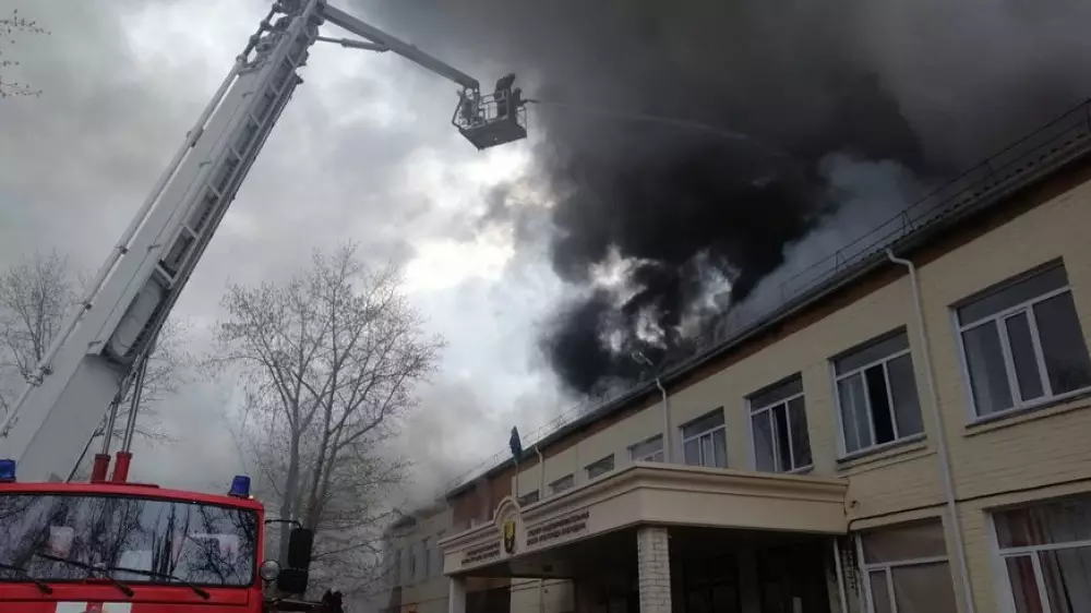 "Происходило возгорание кровли, мебели в кабинетах площадью 1220 квадратных метров. В 10.15 пожар ликвидирован. С отравлением продуктами горения госпитализирована женщина 1975 года рождения. Ее состояние - средней степени тяжести. Причина пожара и ущерб устанавливаются", - сообщили в пресс-службе ДЧС Павлодарской области.