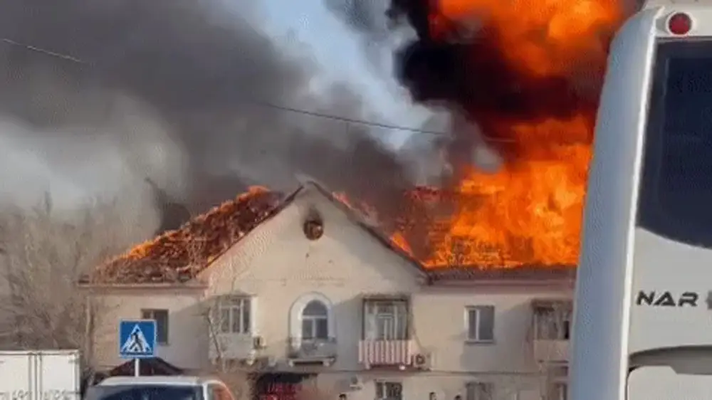 В двухэтажном многоквартирном жилом доме по улице Жусупа, 2, произошел пожар, загорание кровли на предварительной площади 800 квадратных метров. Информация о пострадавших не поступала. Силами ДЧС проводится эвакуация жителей", - сообщил Иманкулов.