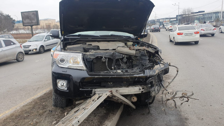 Авария произошла днем 13 января на пересечении с улицей Жарокова. По словам очевидцев, водители автомобилей Mitsubishi Pajero и Toyota RAV4 двигались по проспекту Аль-Фараби в западном направлении. В это время девушка на Toyota Land Cruiser не справилась с управлением.