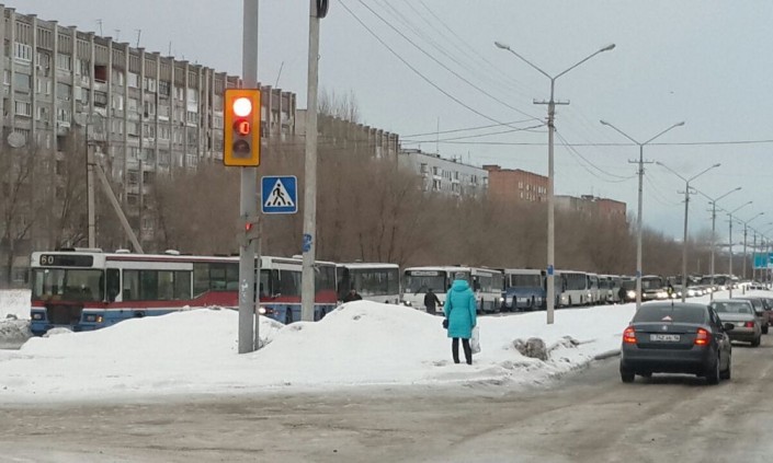 Между тем, в городе образовалась одна из самых протяженных автобусных пробок за последние несколько лет. Из-за скользкой трассы общественный транспорт застрял на льду. Огромная пробка в несколько сотен метров растянулась на проспекте в районе Левобережья. Около двух десятков автобусов встали один за другим, будучи не в состоянии двигаться на небольшой пригорок из-за чрезвычайно скользкой трассы. Сотни горожан опоздали на работу. В ситуацию уже вмешались местные власти.