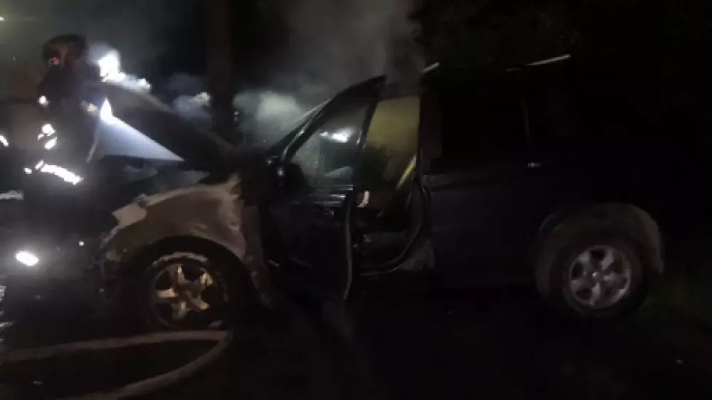 Легковушка сгорела в новогоднюю ночь в Павлодаре, передает корреспондент Tengrinews.kz.