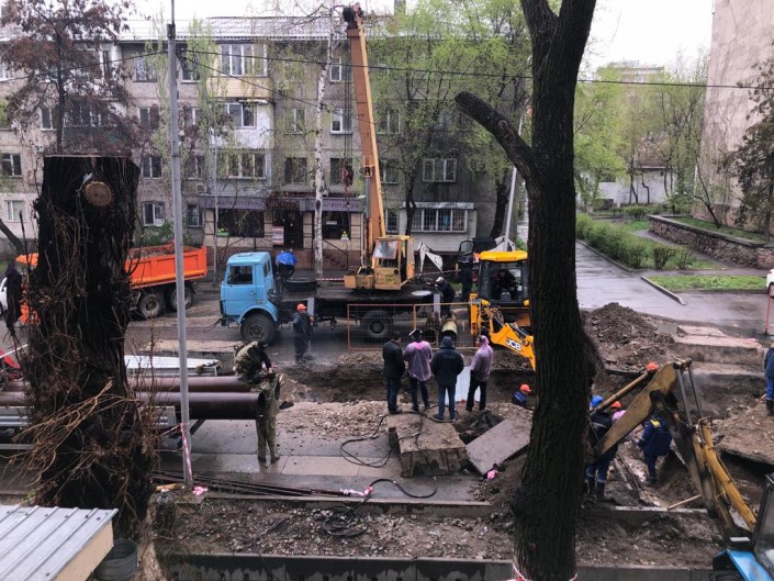 Рано утром 10 апреля на участке, проходящем по улице Пушкина южнее улицы Толе би, произошел порыв изношенного трубопровода. Он эксплуатировался с 1993 года. Четверых пострадавших забрали в больницу.