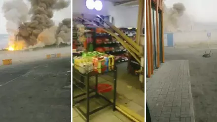 Плачущая женщина записала на видео разбитый взрывом придорожный магазин у АЗС. На кадрах видны разбитые окна, столб дыма и пыли, а на заднем плане зарево от взрыва на военном складе в Байзакском районе Жамбылской области, передает корреспондент Tengrinews.kz.