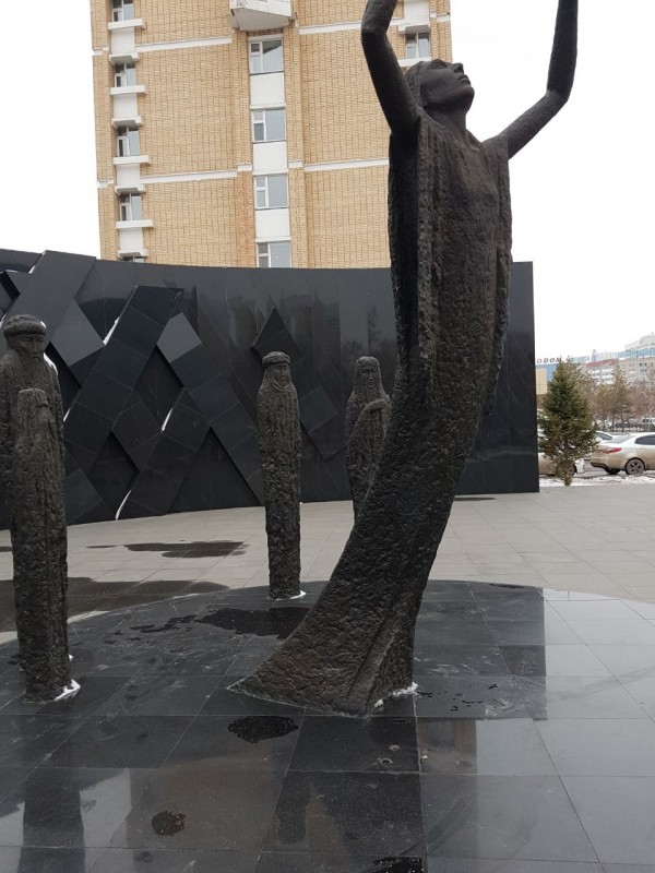 Отметим, монументальный комплекс представляет из себя "Стену скорби" в форме части юрты "Кереге" и скульптурную группу, состоящую из фигур женщины и ребенка. Автором архитектурной концепции "Стена скорби" стал Орал Алибаев, а концепцию монумента разработал скульптор Валерий Пирожков.