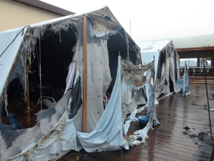 "Он спал и не слышал, чтобы их будили! Ему стало жарко, проснулся, повернулся направо — и вся стена в огне была, весь потолок в огне! Он встал и побежал будить всех и кричать: "Пожар! Вставайте!" Выбежали они в чем спали, босиком! Сгорели все вещи и телефон. Час стояли на улице, потом их куда-то впустили. Он позвонил мне в 04.00 где-то и сказал, что "у нас пожар, палатки сгорели, приезжай за мной!" Мы и выехали".